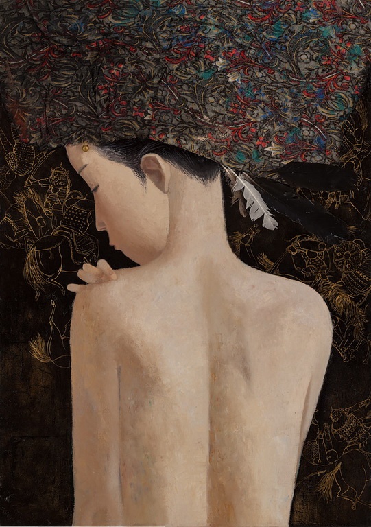 2018, 壓克力彩、炭筆、箔、畫布, 100×90 cm