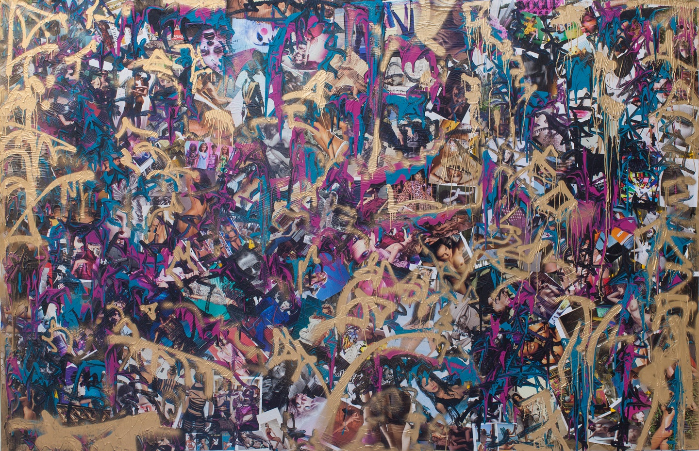 2019, 壓克力彩、噴漆、印刷品拼貼、畫布, 200x300 cm