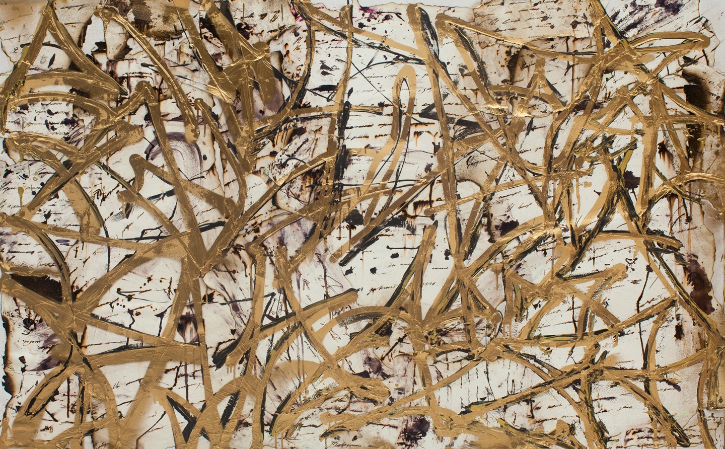 2019, 壓克力彩、手工紙拼貼、墨水筆跡、金箔、畫布, 120x180 cm