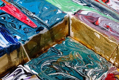 2019, 壓克力彩、金屬噴漆、拼貼、畫布、壓克力腳, 70x100x14 cm