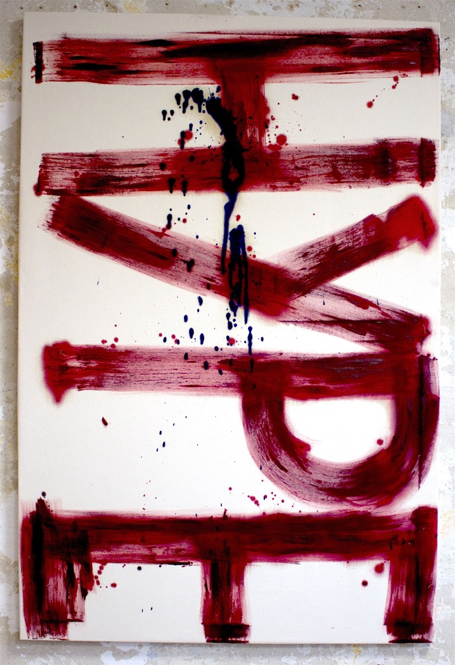 2019 oil and spray on raw cotton, 60x130 cm