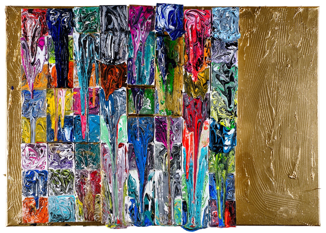 2019, 壓克力彩、手工紙拼貼、墨水筆跡、金箔、畫布, 120x180 cm